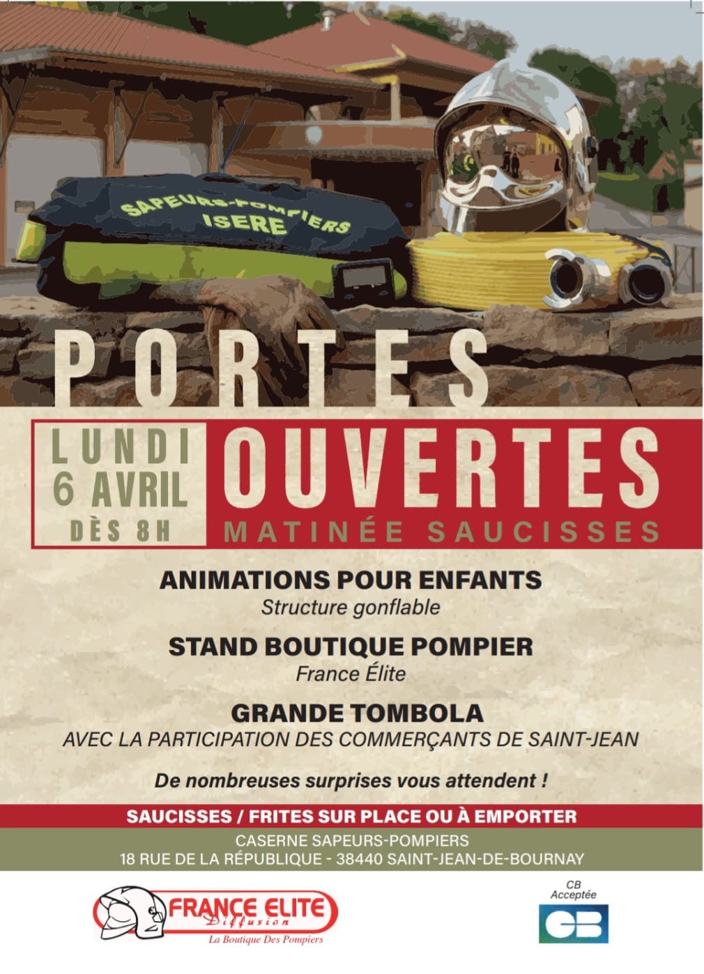 Lundi 6 avril 2026, venez passer un moment convivial à la caserne des Sapeurs-Pompiers de Saint-Jean-de-Bournay ! 😃